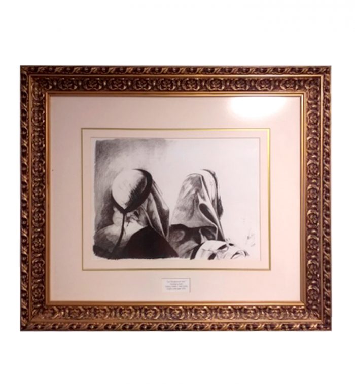 Litografía digital del dibujo pintado al carboncillo “Santiago y Juan”, de la serie “Los Discípulos de Jesús”. Su autor es el Doctor en Teología y Filosofía Néstor Soto Godoy. Es una obra que juega con la luz y la sombra, para finalmente proyectar la amistad y la unidad hacia la luz de lo divino.